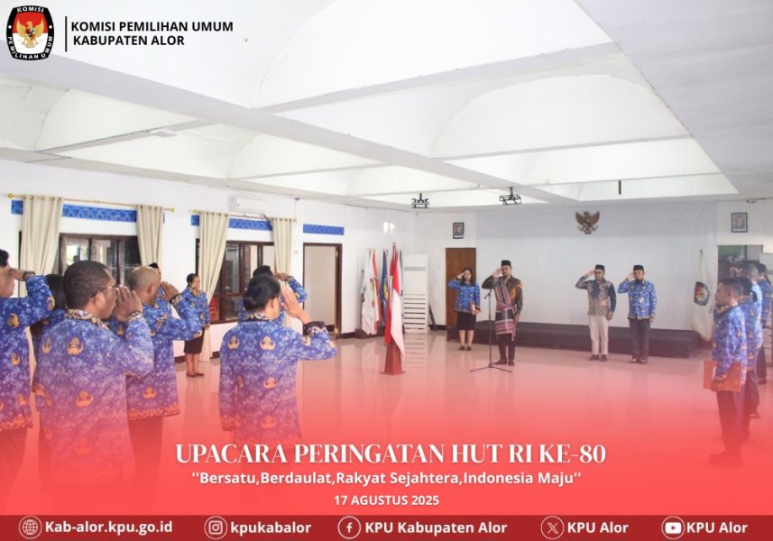 TemanPemilih, KPU Kabupaten Alor melaksanakan Upacara Peringatan HUT Ke-80 Republik Indonesia pada Minggu (17/8/2025) di aula kantor KPU Kabupaten Alor. Anggota KPU Kabupaten Alor, Muhammad Yamin Smapbeli, bertindak sebagai inspektur upacara.