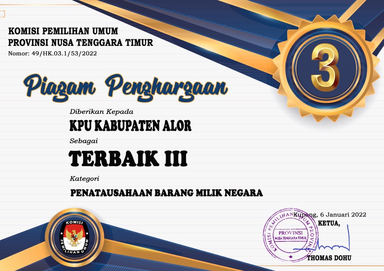 KPU ALOR TERBAIK KETIGA KATEGORI PENATAUSAHAAN BARANG MILIK NEGARA