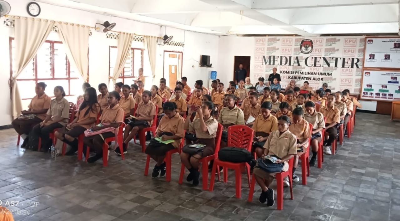 PROJEK Penguatan Profil Pelajar Pancasila (P5) merupakan salah satu bagian yang tak terpisahkan dalam Implementasi Kurikulum Merdeka. Salah satu kegiatan P5 dengan tema Suara Demokrasi adalah dengan mengunjungi Rumah Pintar Pemilu KPU Kabupaten Alor. Demikian penyampaian koordinator P5, Syaidah Dahlan, SP, saat menyampaikan maksud kedatangannya di KPU Alor, Sabtu 9 September 2023. Rombongan SMK negeri Bukapiting berjumlah 53 orang siswa dan 6 orang guru pendamping. Kunjungan tersebut diterima Ketua Divisi Data Madriyana Cendana Pong, Ketua Divisi Sosialisasi Charlemen Djahadael dan Ketua Divisi Teknis Munawir Laamin. SMK Negeri Bukapiting merupakan sekolah ketiga sekaligus sekolah pertama dari luar wilayah Kecamatan Teluk Mutiara yang mengunjugi KPU Alor. Sebelumnya ada SMA Negeri 1 Kalabahi dan SMA Negeri 2 Kalabahi. Djahadael mengatakan, kurikulum merdeka belajar memberikan efek langsung terhadap sekolah. Salah satu buktinya adalah dengan adanya kunjungan para pelajar ke KPU sebagai lembaga penyelenggara pemilu. “Ada tiga lembaga penyelenggara Pemilu. Pertama itu KPU, kedua Bawaslu, dan ketiga Bawaslu,” kata Djahadael sambil menjelaskan tugas ketiga lembaga masing-masing. “Adi-adik tentu belajar tentang demokrasi di sekolah. Salah satu implementasi dari demokrasi adalah Pemilu. KPU adalah pelaksana teknis dari Pemilu yang sudah dipelajari di sekolah,” tegas Djahadael. Djahadael kemudian mengarahkan para pelajar ke rumah pintar pemilu. Di rumah pintar pemilu terpajang banyak dokumen kepemiluan di dinding, di lemari, dan juga denah tempat pemungutan suara. Sambil menunjuk, Djahadael menjelaskan isi pigura, denah TPS, dan dokumen perolehan suara kepada para pelajar. Para pelajar tampak antusias dan mendengarkan dengan saksama setiap detail penjelasan yang disampaikan. Kegiatan kemudian dilanjutkan dengan sesi diskusi. Sesi diskusi berlangsung menarik. Banyak pertanyaan yang dilontarkan para pelajar. Mereka bertanya tentang mengapa perlu ada syarat 30 persen perempuan dalam pencalonan anggota DPR dan DPRD, juga ada pertanyaan tentang kemanakah suara dari parpol yang tidak lolos ke DPR/DPRD, apa dampak negatif golput, apa dukungan KPU kepada penyandang disabilitas pada hari pemungutan suara, dan beberapa pertanyaan kritis lain. Diakhir kegiatan, Koordinator Project Penguatan Profil Pelajar Pancasila, Syaidah Dahlan, SP meminta kesediaan KPU untuk hadir sekaligus memberikan arahan dalam pemilihan ketua OSIS mendatang.*