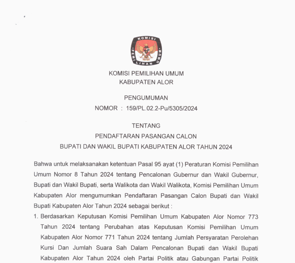 Tim Kampanye Pasangan Calon Bupati dan Wakil Bupati Kabupaten Alor Dalam Pemilihan Serentak Tahun 2024 :