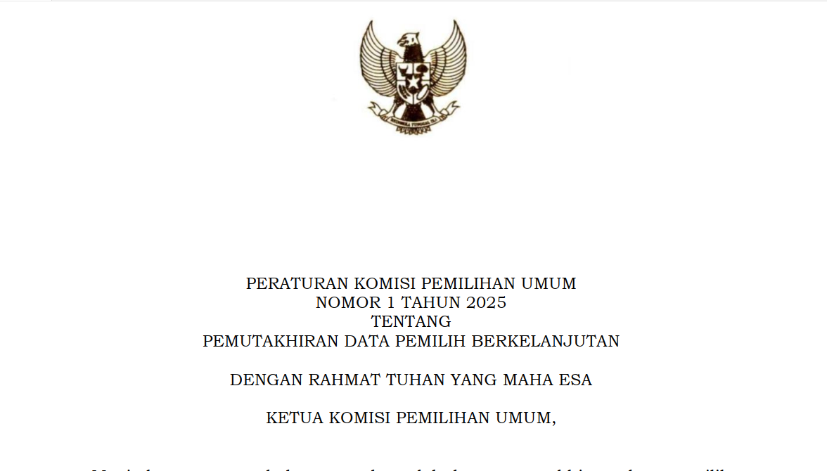 PKPU NO. 1 TAHUN 2025 Tentang Pemutakhiran Data Pemilih Berkelanjutan